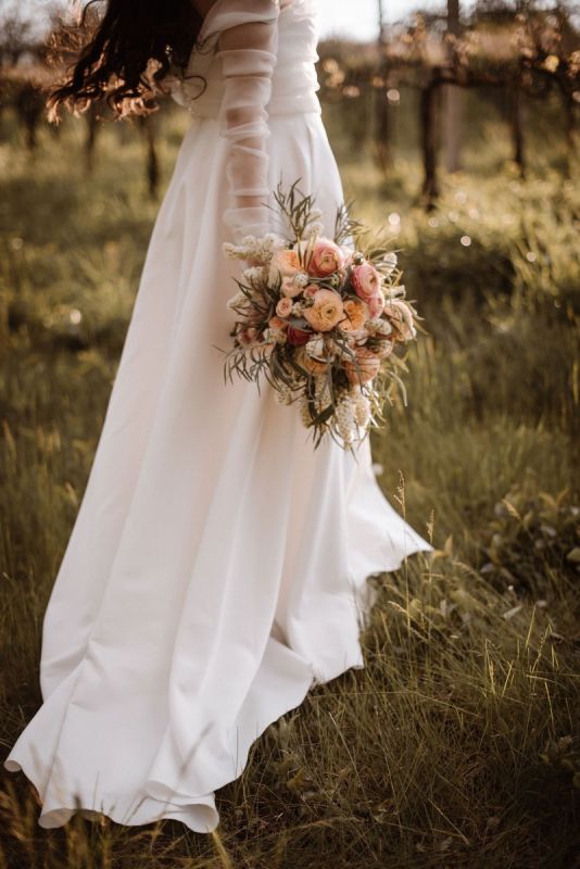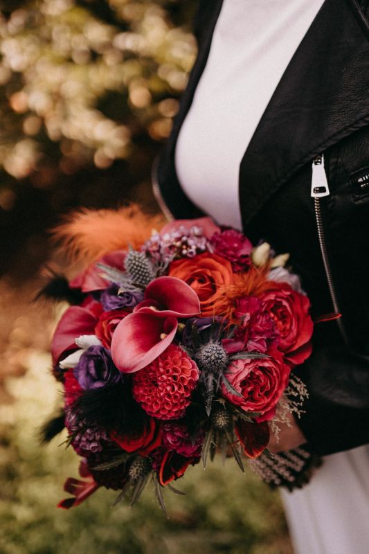 Egy őszi menyasszonyi csokor nemcsak a színeiben, hanem az anyaghasználatában is gazdagabb lehet. A virágok mellett megjelenhetnek termések, bogyók, kalászosok és színes levelek, amelyek rusztikus, bohém vagy romantikus hangulatot adnak az összképnek. Az őszi csokrok sokszor kicsit lazább kötésűek, természetesebb hatásúak, így remekül illenek a greenery és a bohém esküvői stílusokhoz is.